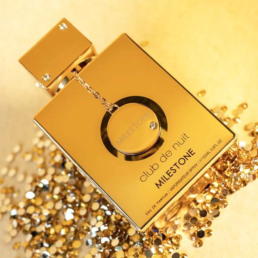 The base notes of Club De Nuit Milestone are anchored by Musk, Ambroxan, and Vetiver. Musk offers a sensual and smooth undertone, creating a warm and inviting finish. Ambroxan adds a layer of ambergris-like richness, enhancing the longevity and depth of the scent. Vetiver brings an earthy, green freshness, rounding out the composition with an elegant and lasting impression.