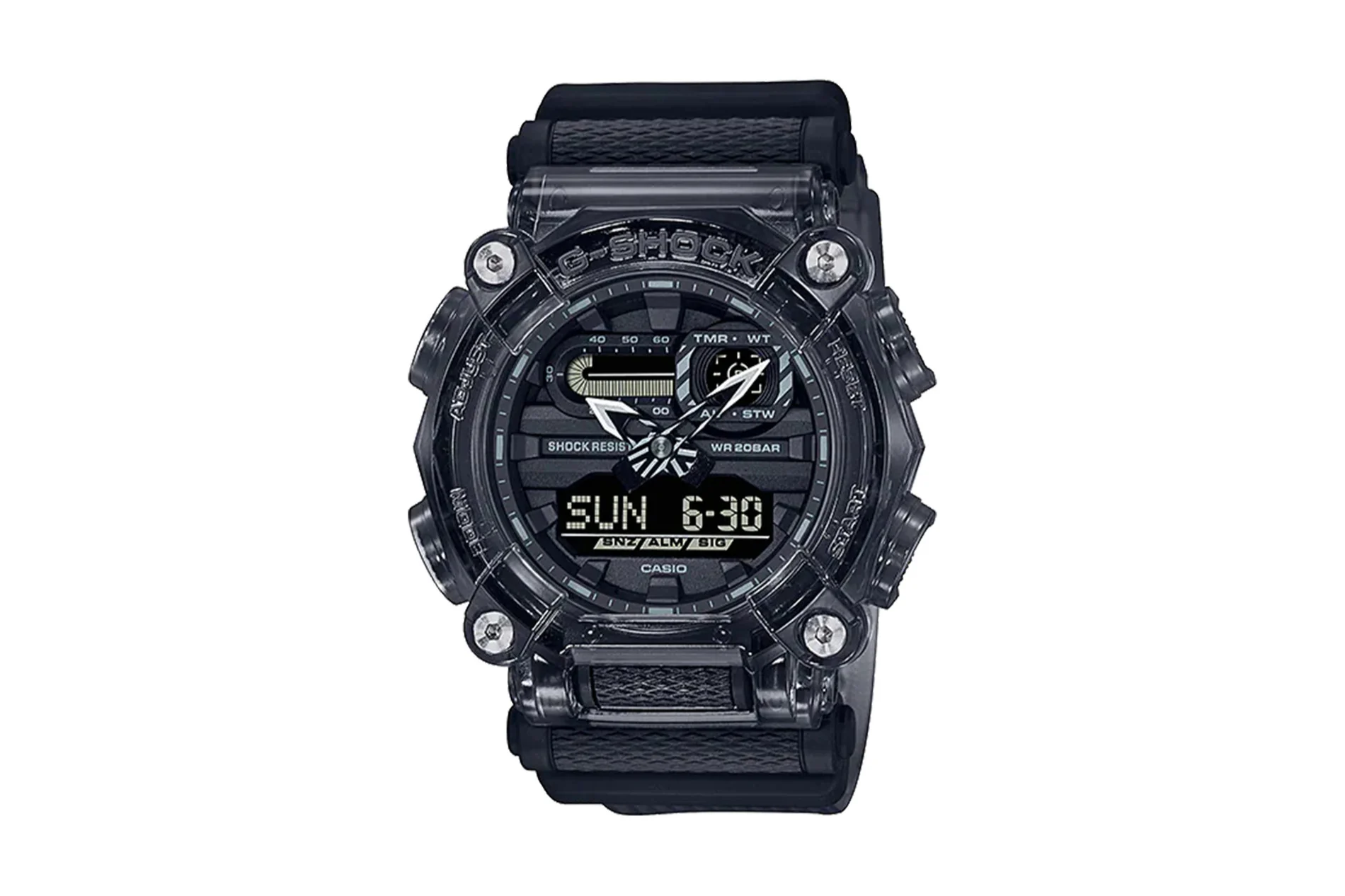 - The G-Shock GA900SKE-8A Transparent/Gray One Size is a fusion of contemporary design and rugged functionality. Whether you’re exploring the city or heading to the gym, this watch is designed to keep up with your active lifestyle. Its unique transparent gray appearance sets it apart, making it a bold accessory for those who appreciate distinctive style and G-Shock’s renowned durability.